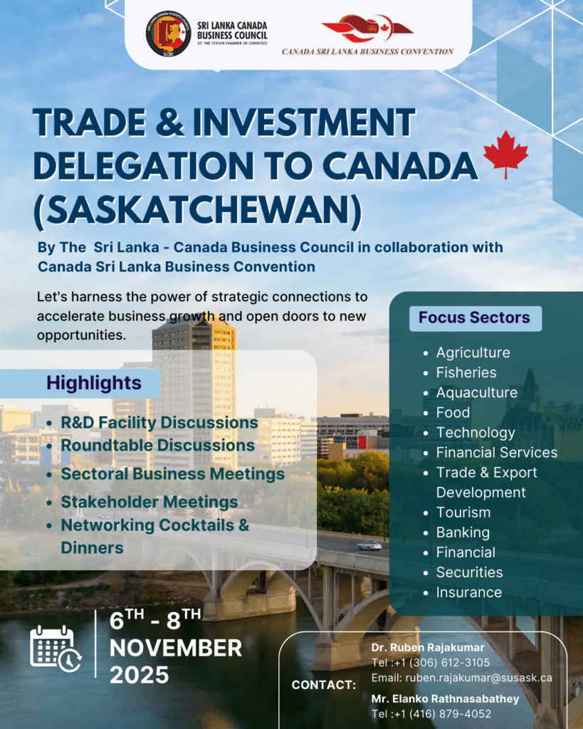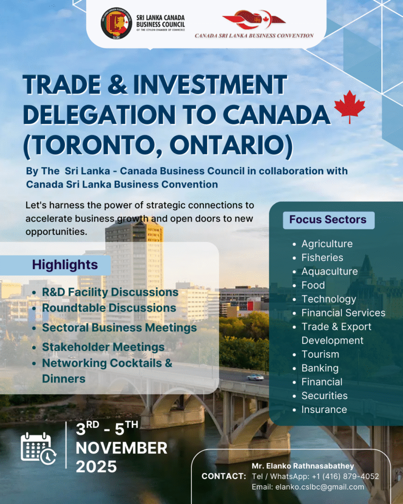 • Update on the Sri Lanka – Canada Business Promotion and Investment Mission 2025 – Day 01 November 1, 2025